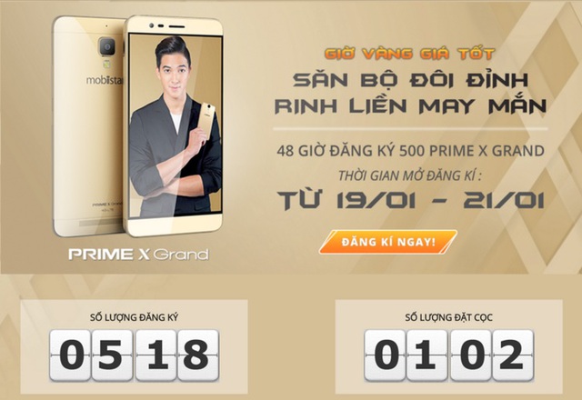 Hơn 1000 lượt đăng kí đặt hàng, hơn 200 lượt đặt cọc mua Prime X Grand đã xuất hiện khi Mobiistar chính thức mở chương trình flashsale:“Giờ vàng giá tốt: Săn bộ đôi đỉnh, rinh liền may mắn” vào ngày đầu tiên (19/1).